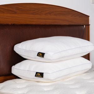 This is our 100% duck feather filled pillow. This pillow boasts medium support with added cozy comfort making it lovely to nestle into ideal for both side sleepers that need to keep their neck and spine aligned throughout the night.