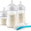 This Newborn Gift Set is the ideal way to start feeding and soothing. With the Natural Response nipple, babies can drink at their own rhythm like on the breast, making it easy to combine breast and bottle-feeding. This bottle has a unique nipple opening which only releases milk when the baby actively drinks – so when they pause to swallow and breathe, the milk pauses too. The wide, soft, and flexible nipple of the Avent bottle is designed to mimic the shape and feel of a breast, helping the baby to latch on and feed comfortably. Additionally, the anti-colic valve of the baby bottle is designed to keep air away from your baby’s tummy during feeding, to help reduce colic and discomfort. Every baby feeds differently, and develops at their own pace. We’ve designed a range of flow rates so you can find the perfect one for your baby and personalise your Avent bottle. Mix and match our breast pump, Philips Avent bottle and cup parts, and create the product that works for you, when you need it. The ergonomic Philips baby bottle is easy to grip at any angle to give maximum comfort during feeding – easy for both your hands, and tiny hands, to hold! The wide baby bottle neck makes filling and cleaning easy, and there are only a few parts for quick and easy assembly. The included bottle brush with a specially-curved brush head and moulded handle-tip enables you to reach corners of all wide-neck baby bottles, nipples, and feeding products for thorough cleaning.* Take care of sensitive skin with the Philips Avent Ultra-Soft pacifier; the super-soft, flexible shield follows the shape of your baby’s cheeks, leaving fewer marks and causing less skin irritation, for more comfortable soothing. Philips Avent Natural bottles and nipples are made of BPA free materials.** Our new Natural Response Philips Avent bottles are different from free-flow baby bottles. Just like breastfeeding, it could take a few tries to get it right. That’s perfectly natural. Includes: 1 Bottle brush, 2 Baby Bottles 4oz/125ml, 2 Baby Bottles 9oz/260ml, 1 Ultra-Soft pacifier 0-6m. *Brush colour may vary, image for reference only **0% BPA, following EU regulation 10/2011